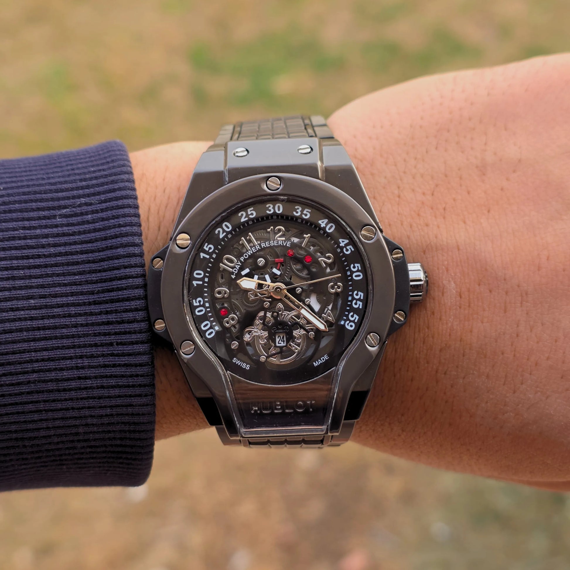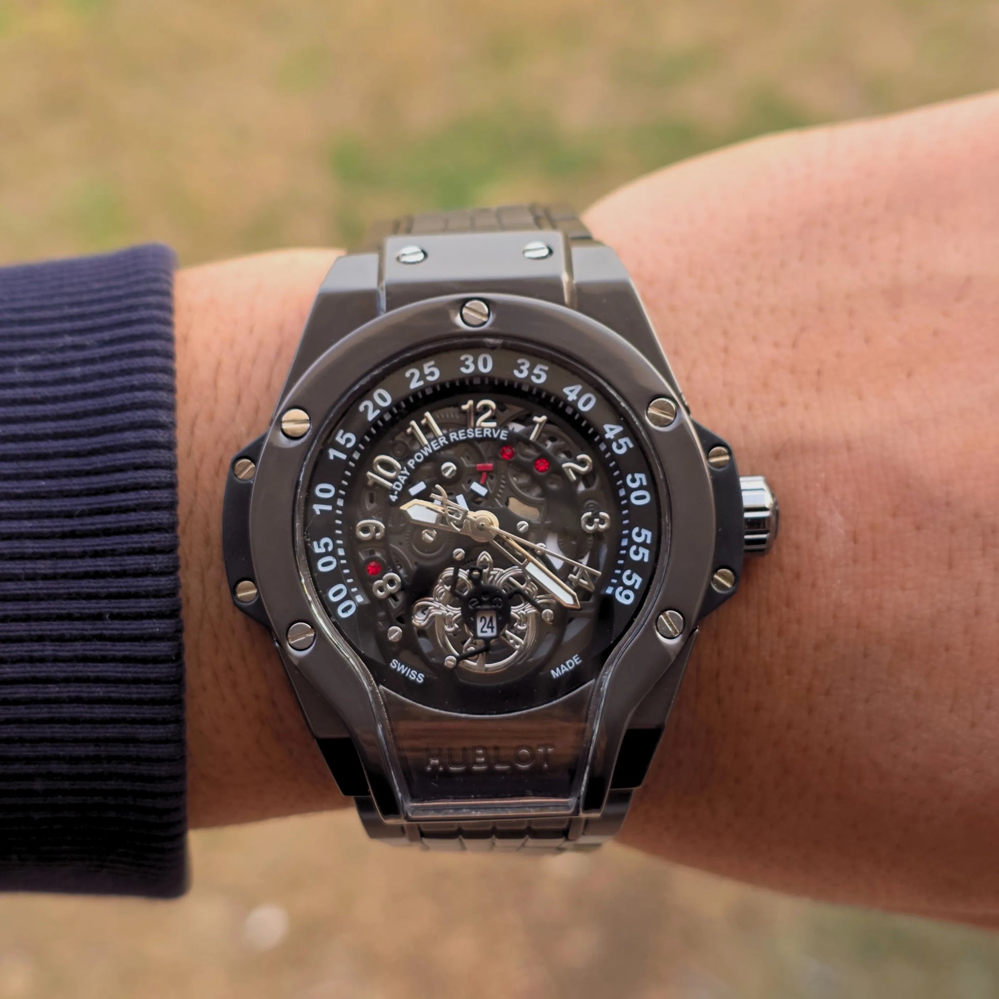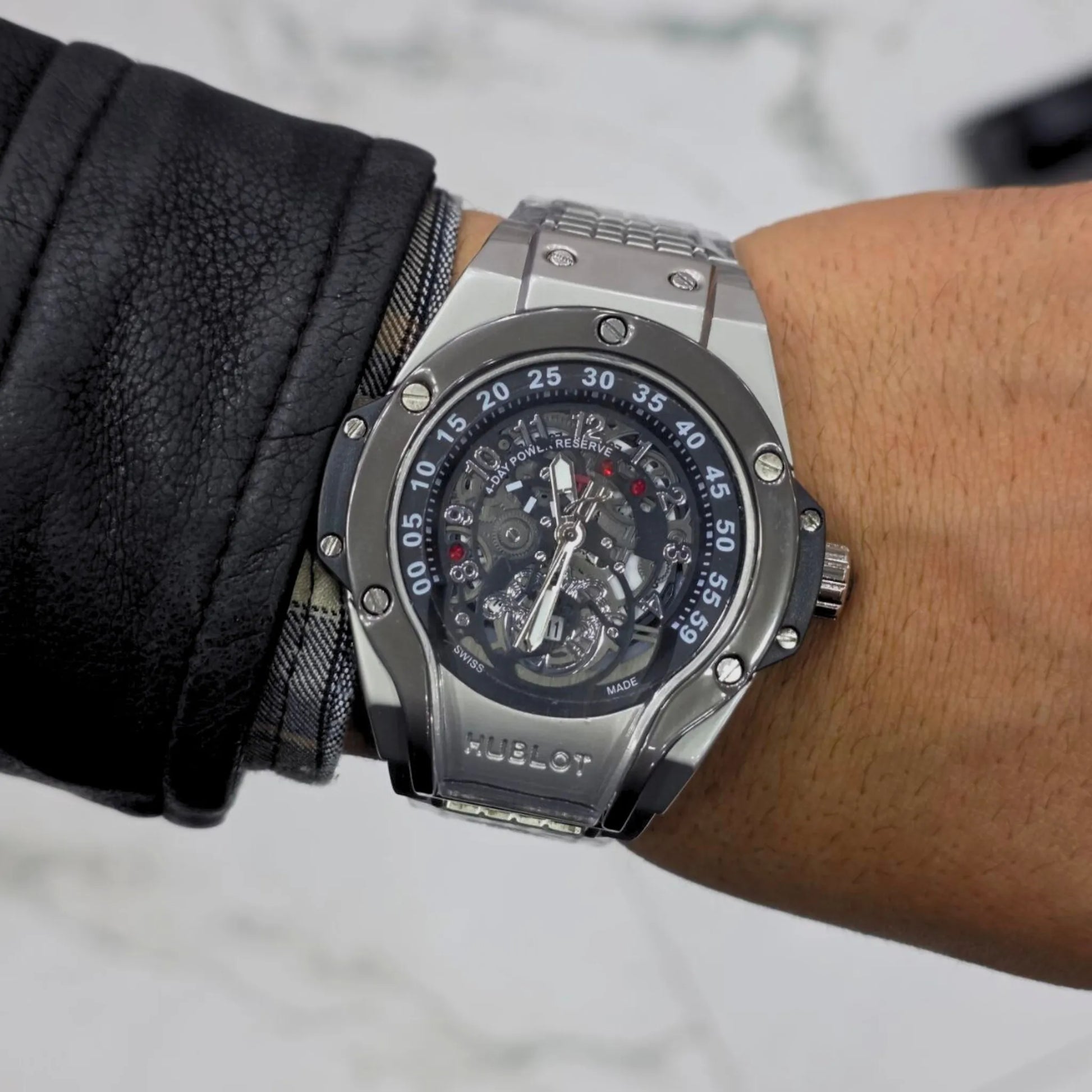 ساعة هوبلوت – تصميم سكليتون جريء بفخامة رياضية
